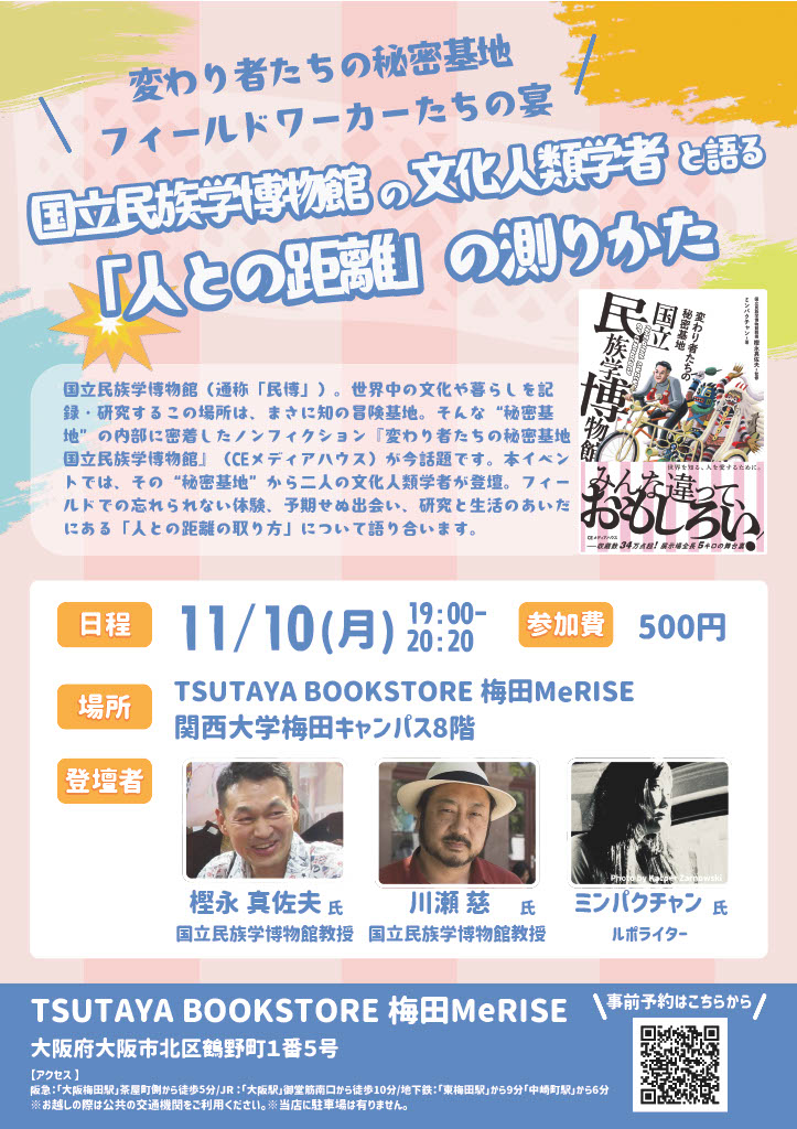 【外部イベント】11/10(月)変わり者たちの秘密基地 フィールドワーカーたちの宴:国立民族学博物館の文化人類学者と語る「人との距離」の測りかた