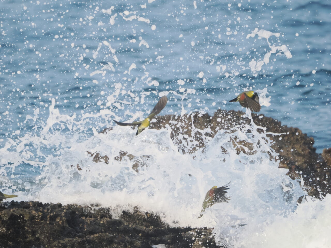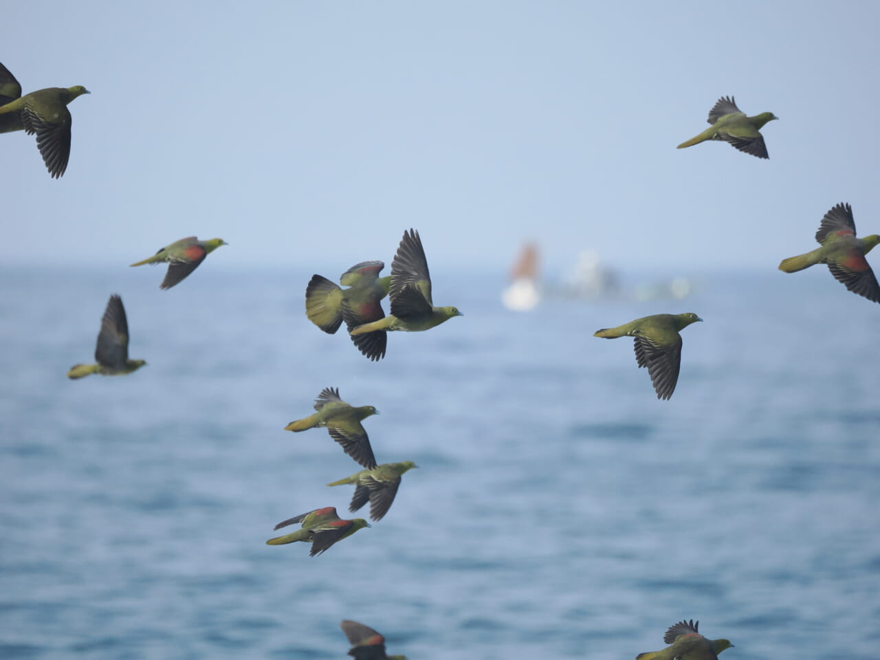 アオバト、カワラバト(ドバト)、オオミズナギドリ、オオセグロカモメ、ウミネコ、トビ、オオタカ、ツバメ、イソヒヨドリ