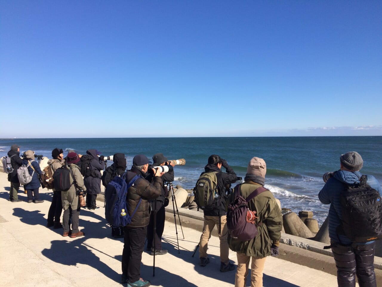 最後にテトラポッドに乗っているシノリガモを観察。スコープでギリギリ観察できる距離でした。