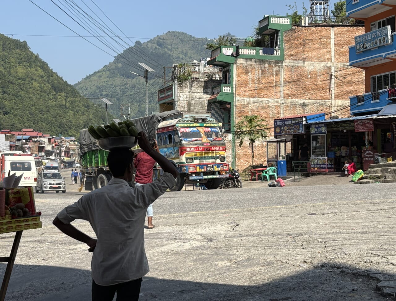 マナカマナ寺院はネパール中部に位置し、首都カトマンズから約140km西にあります。距離的には遠くありませんが、ネパールの道路事情は日本とは異なり、舗装されていないガタガタ道もあり、車でおよそ3時間半かかります。途中、いくつかの村を抜け、渓谷を越え、クラクション鳴り響くインド製の派手なトラックとすれ違いながら進むその道中は、決して快適とは言えませんが、その分「ネパールの大地を旅しているんだ」というロマンを掻き立てられます。天気が良ければ、車窓の右手にヒマラヤ山脈が姿を現すこともあります。