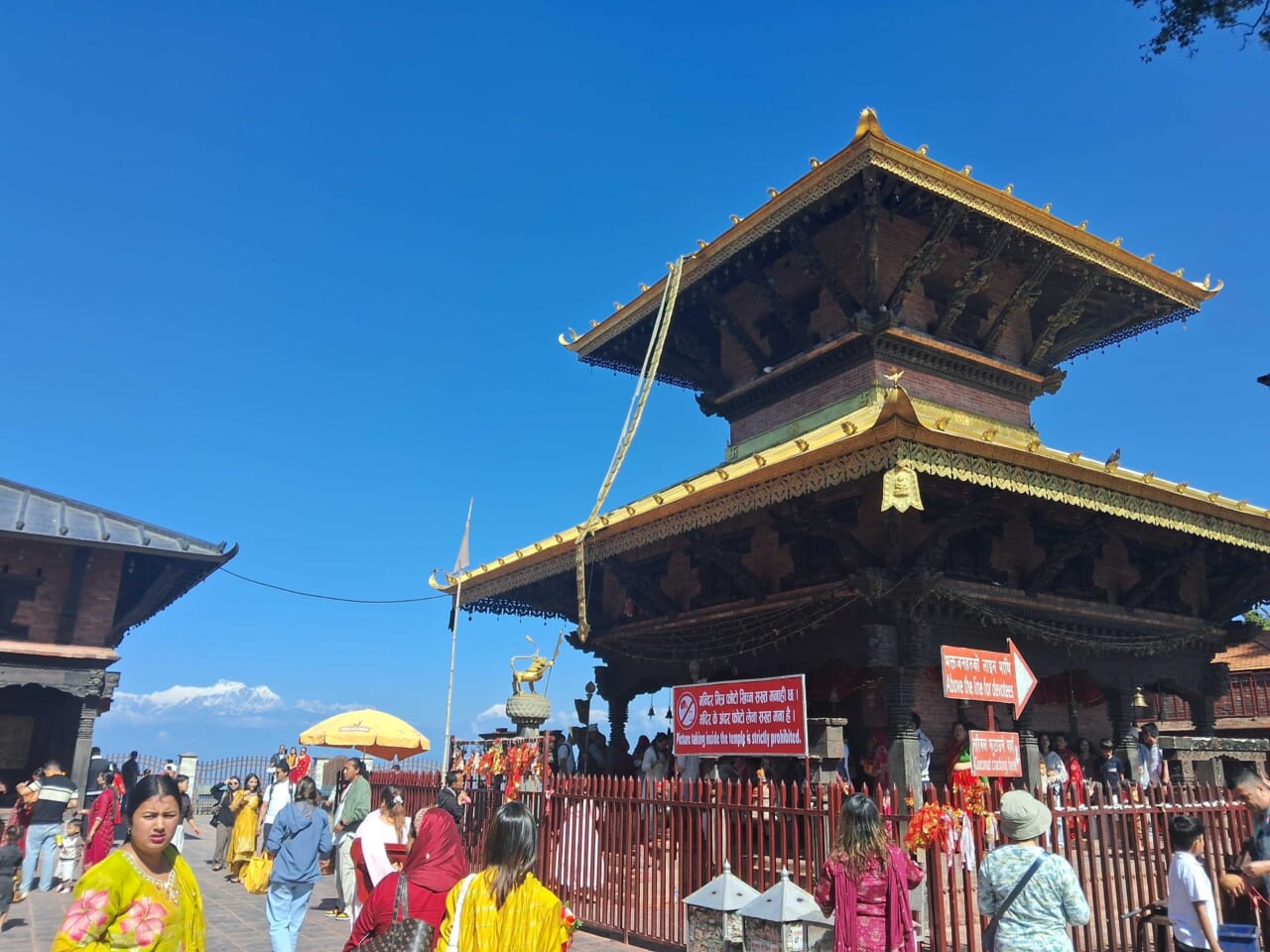 参道を抜けると、ようやくマナカマナ寺院の姿が見えてきます。寺院は意外にもこぢんまりとしており、2層の銅葺き屋根を持つ伝統的な造り。生贄や血の滴る動物など目を伏せたくなるシーンもありましたが、全国からこんなにも多くの方が参拝するこの場所の持つ神聖さを感じさせられました。