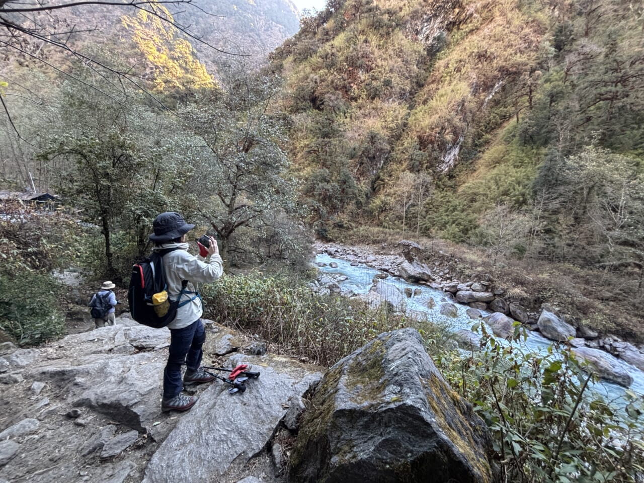 ランタントレッキングは、ランタン・コラの谷沿いをたどりながら歩くルートで、全体的に緩やかなアップダウンが続きます。無理のない行程のため、景色や周囲の自然を眺めながら、気持ちに余裕を持って楽しめるのが大きな魅力です。