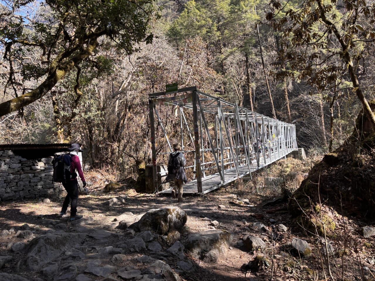 標高が上がるにつれ、木の隙間からはランタンⅡ(6,561m)やガンチェンポ(6,387m)といった山々がちらりと姿を見せてくれます。歩けば絶景、カメラのシャッターが止まりません。