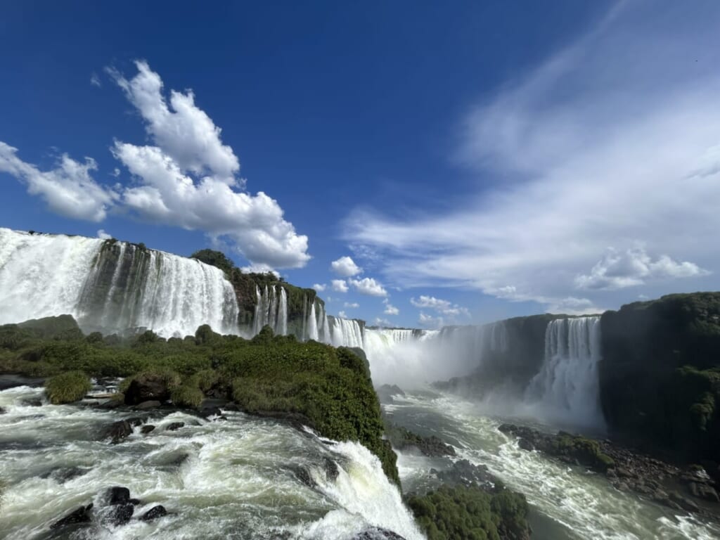 巨大な滝を間近に感じられて大満足!今回はパタゴニアだけに終わらず、一気に北上してアルゼンチンとブラジルの両国に跨るイグアスの滝まで足を延ばしました。数時間で少し肌寒さのある乾燥したパタゴニアからとても暑い亜熱帯のイグアスへ到着し、アルゼンチンの広大さを実感します。イグアスの滝はアルゼンチン側とブラジル側それぞれに見どころがあり、先ずはアルゼンチン側からスタート。通称”悪魔の喉笛”と呼ばれる巨大な滝つぼを展望台から見下ろします。轟音立てて流れ落ちるその姿の前には言葉を失う程の圧倒的な迫力を感じます。そして、ブラジル側では遊歩道に沿って各場所からアルゼンチン側の滝全貌が見渡せ、また違った角度から滝の景色を楽しむことが出来ます。両側からイグアスの滝を十二分に眺め、お客様の中には、ボートツアーやヘリ遊覧などのオプショナルまで楽しまれ、最後の最後まで満喫されていました。