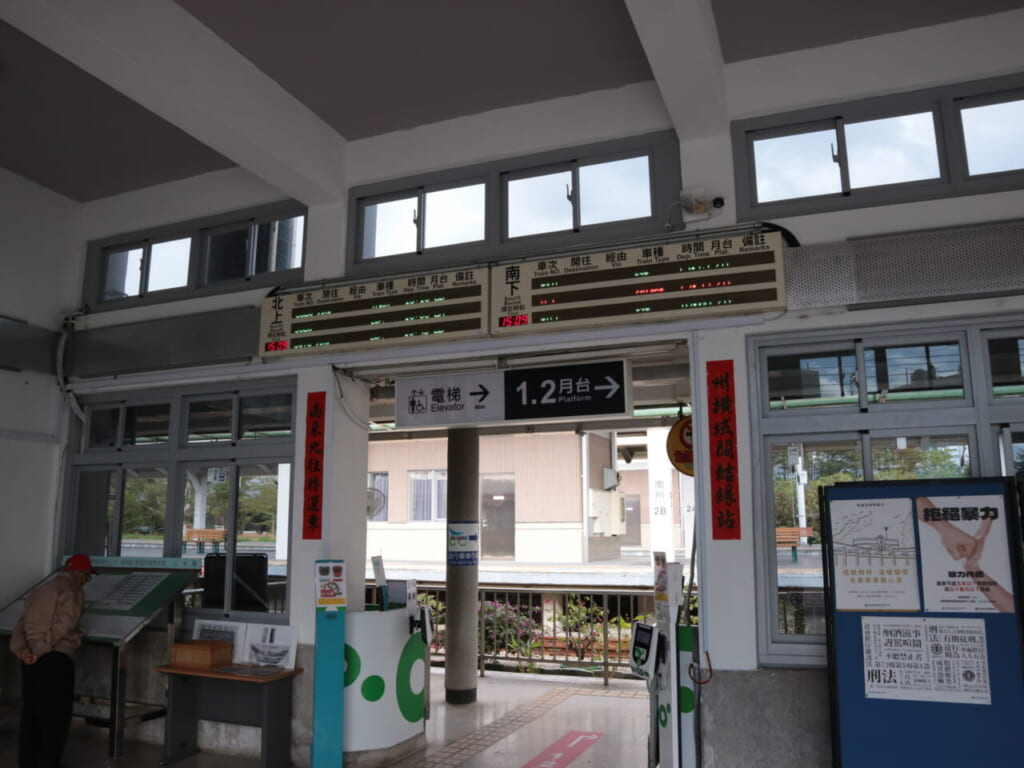 改札をくぐり、構内へ。台湾鉄道屏東線に揺られて田園風景が広がる屏東平原を北上する30分のローカル列車の旅です。