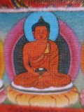 金剛界五仏。東に青色の阿閦如来、南に黄色の宝生如来、西に赤色の阿弥陀如来、北に緑色の不空成就如来、中央に白色の大日如来。入学試験の解答はもちろんチベット語なので、日本名が分からなくても答えることができた。