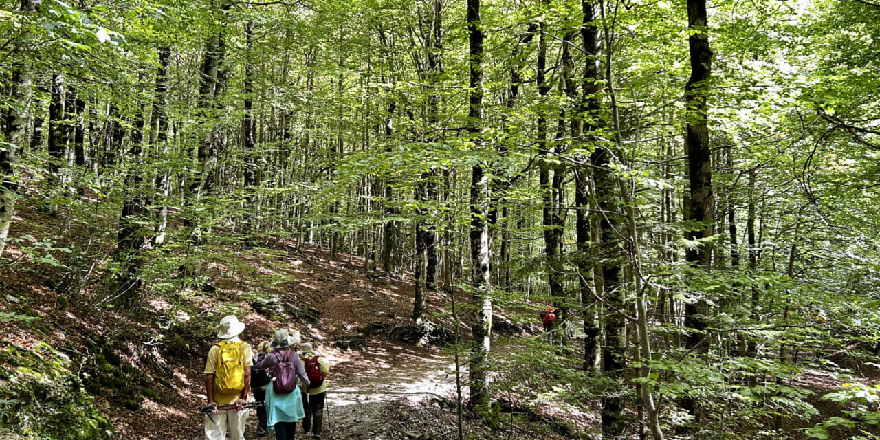 午前: リグロスの奇岩ハイキング。リグロス村の奇岩群「マージョス・デ・リグロス」を一周するハイキングでは、高さ300mの岩壁の迫力を間近に感じながら進みます。ガジェゴ川を望む絶景ポイントもあり、プレピレネーの雄大な自然を満喫できる爽快なルートです。(歩行=約5.5km、約4時間半、標高差約400m)