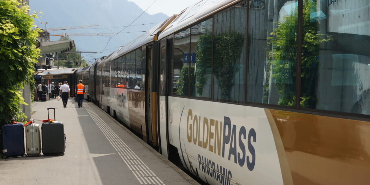 朝: 列車を乗り継ぎモントルーへ。ご希望の方は、インターラーケン駅からモントルーまでゴールデンパス・パノラマエクスプレスにて約3時間30分の豪華列車の旅をお楽しみください。※ゴールデンパス・パノラマエクスプレスをご希望頂いても予約が取れない場合があります。お取りできた場合はお1人25スイスフランの予約料が必要です。お席は同行者でも隣席以外やご希望の座席(向き等)がお取りできない場合があります。また、同車両にお席がない場合は、別車両になる場合がありますことご了承願います。