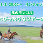 オンライン 2月19日(木) ツアー同行講師・西村幹也が語る モンゴル 秋・冬のタイガ トナカイ乗りツアーの準備と実際 日 時2026年02月19日(木)20:00~21:30 会 場オンライン開催(Zoom) 参加費無料 主 催風の旅行社 モンゴル