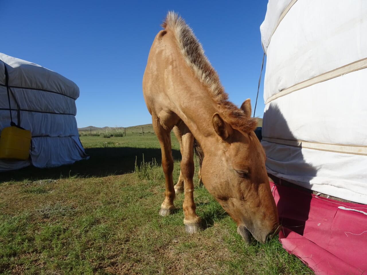 日々開発が進むウランバートル近郊の草原から南西へ約200㎞、古都カラコルムとの中間地点にリバーサイドキャンプがあります。モンゴル随一の美しい大草原や、緩やかに流れる母なるトーラ川とそこに集う家畜や野鳥、岩絵などの史跡が点在するモンゴルの魅力がギュッと詰まったとっておきの立地のため、かつて椎名誠監督の『白い馬』という映画のロケ地にもなりました。ウランバートルから遠く離れている分、夜は完全に光害から離れ、宇宙を肌で感じるような満天の星空を期待できます。