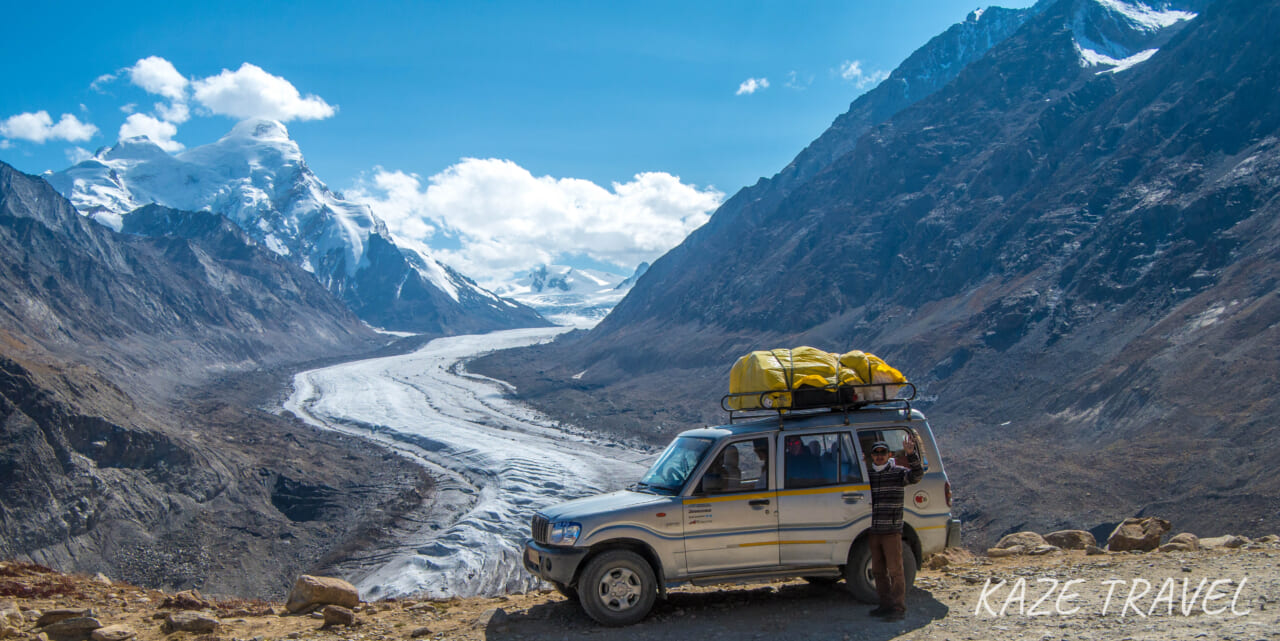 午後:車とミートし、ペンジラ(4400m)を越えた先にあるS字が特徴的なダラン・ドゥルン氷河を展望します。その後、ザンスカールの中心地パドゥム(3,565m)へ移動します。(走行=約4-5時間)7月は高山植物が期待できます。