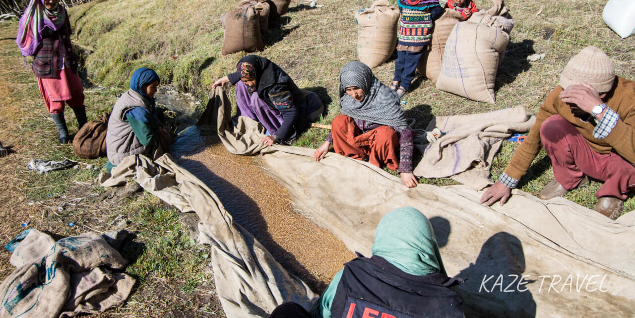 午後:車で一路ニンムー村(3,200m)へ。(走行時間=約1時間)高所順応の為、村周辺を散策します。途中、ニンムー村のスタンジンさん宅でバター茶をいただいたり、立派な台所も見学します。