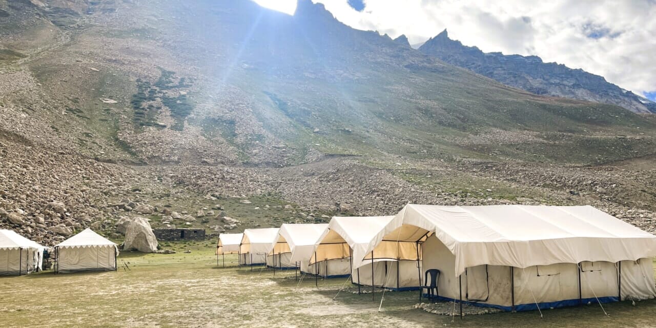 午後:僧院を見学した後、ゲストハウスで昼食。再び歩いてスタート地点へ戻ります。(歩行時間=往復約3時間)その後、ジープにてゴンポ・ランジュンへ。両岸に迫りくる6,000m級の赤茶けて荒涼とした山塊を眺めながら、大黒天を意味するゴンポ・ランジュンを仰ぎ見るキャンプサイト(約4,400m)まで車で移動します。