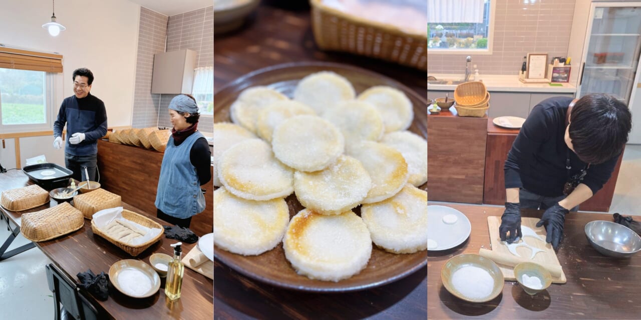 午前:朝食は町の食堂にて。島名物のアワビのお粥をいただきます。その後、城邑民俗村さんぽへ。近隣に暮らす一般家庭にて、島伝統のおやつ、ビン餅と油餅作り体験。作ったお餅は昼食としていただきます。