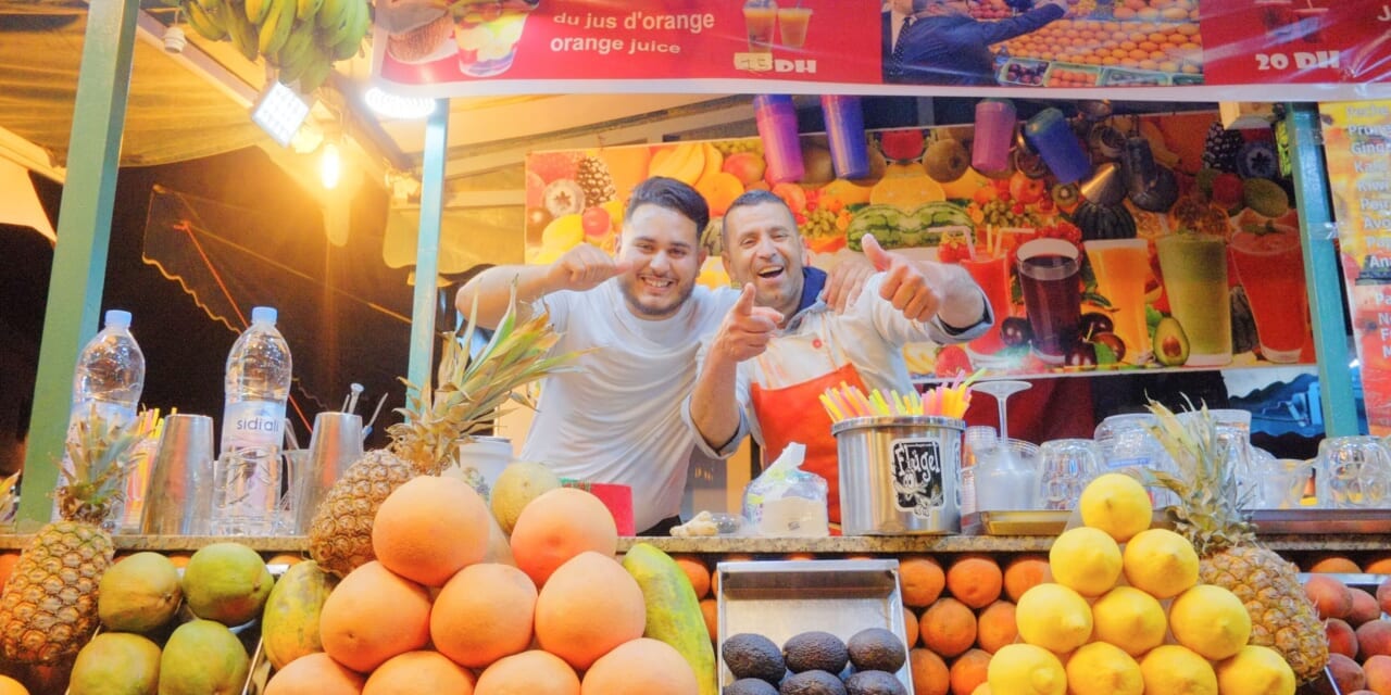 午前:マラケシュのメディナ(旧市街)へ。活気ある商店の集まる市場・スークを見学します。