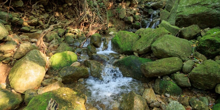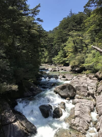 「山頂から清流が一気に駆け抜ける谷」
