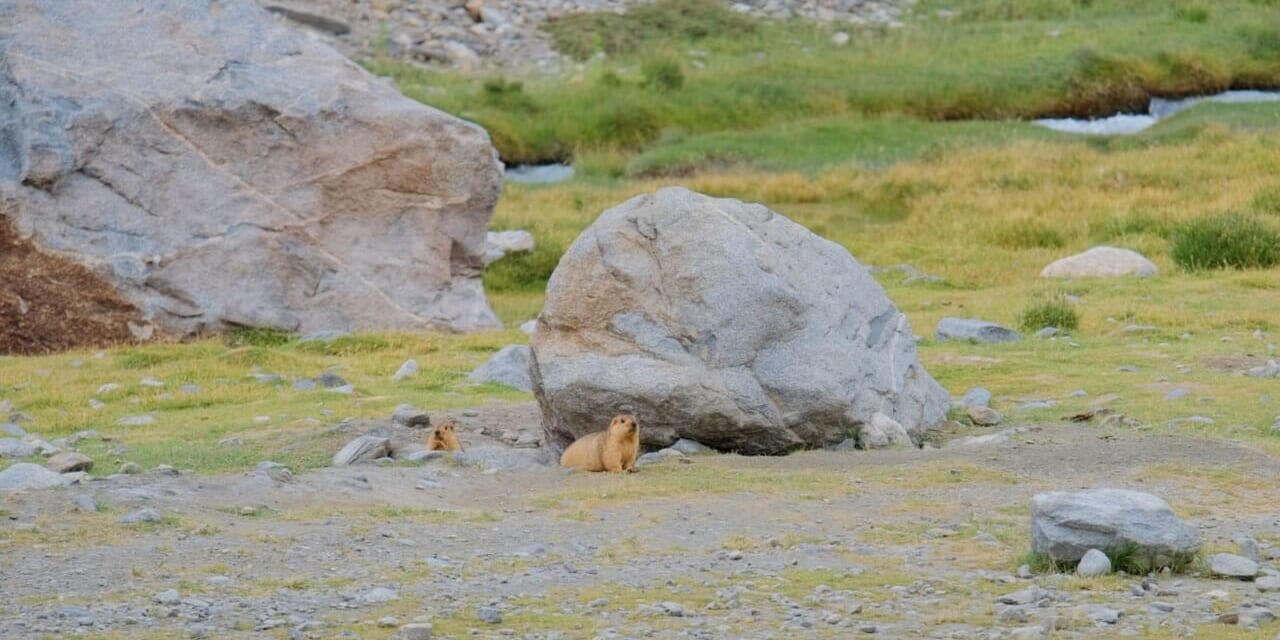 パンゴンツォへの道にはマーモットなどの野生動物と出会うことも