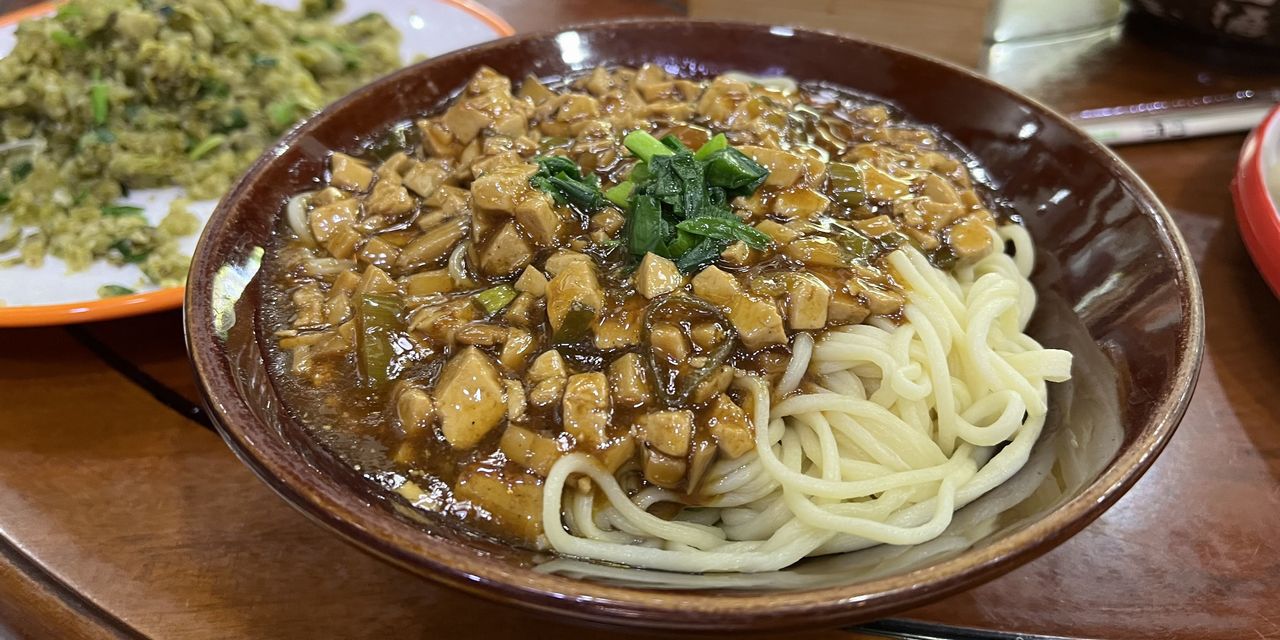 敦煌名物 黄色い面とロバ肉(見た目以上に美味しいです)